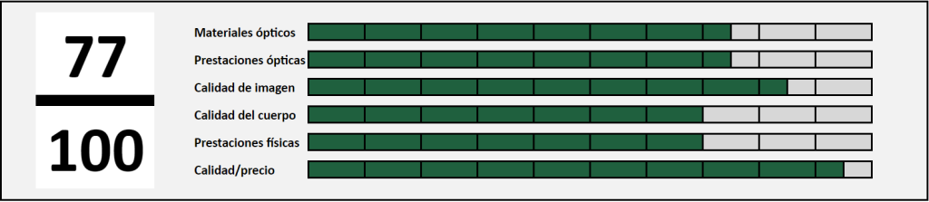 Nivel óptico muy alto y calidad en la construcción del cuerpo. Muy difícil de encontrar algo similar en su rango de precio. A no ser que seas profesional y quieras lo mejor de lo mejor, difícil encontrar una opción mejor.